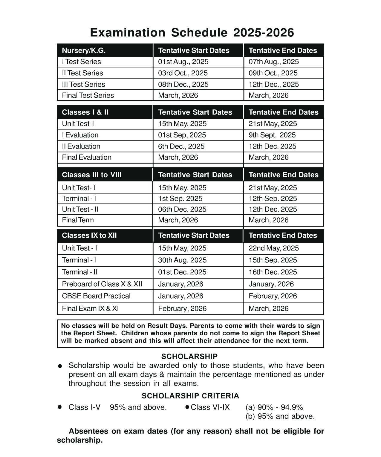 Examination Schedule